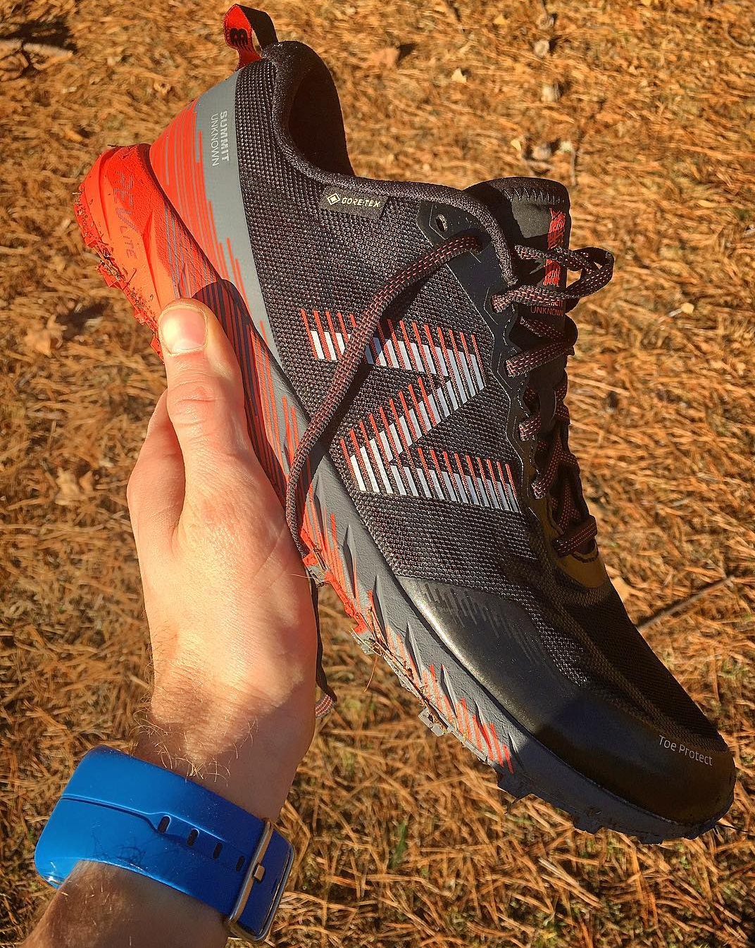 The first iteration, with a new outsole, of New Balance's trail trainer, the FuelCell Summit Unknown v1 -- as well as Gore-Tex waterproof and breathable technology