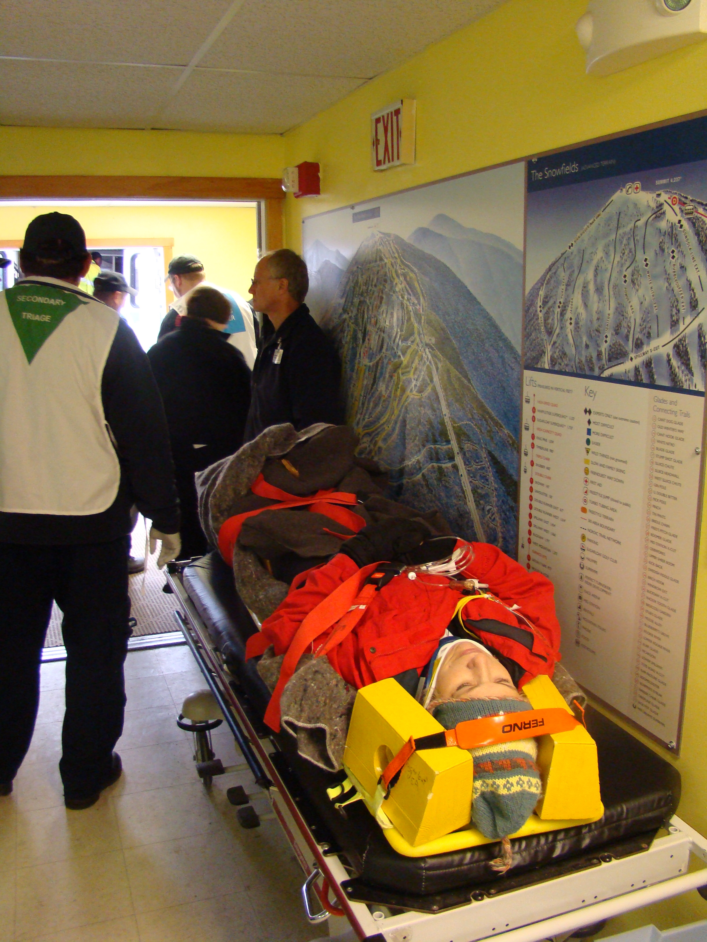 Sugarloaf even left a few ambulances and intentionally did not call Maine’s LifeFlight helicopter to allow for the possibility of any real-life emergencies arising during the drill, and sure enough, NorthStar used the LifeFlight chopper on a call—one that all mock responders heard on their radios. “’Cause if this were really happening,” said Austin, “the rest of the world wouldn’t stop.”